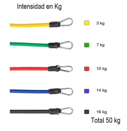 Set completo con 5 bandas de resistencia progresiva.